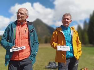 Am Nachmittag des ersten Kurstages präsentiert Andreas Jedinger, Biologe und Geschäftsführer von Natopia, wichtige biologische und ökologische Begrifflichkeiten – ein Grundwortschatz sozusagen, um bei Naturschutz- und Umweltthemen mitreden zu können. Bei einer Planungsaktivität zum Einstieg definieren Kleingruppen Ziele und Maßnahmen für ihr imaginäres Schutzgebiet. Das Verständnis verschiedener biologischer Konzepte und pflanzlicher Konkurrenzstrategien, die Andreas spielerisch und bildhaft aufbereitet hat, macht deutlich, dass Artenschutz auch immer mit Lebensraumschutz einhergehen muss. Kein Organismus kann auf Dauer bestehen, wenn ihm seine ökologische Nische abhanden kommt. Der kurze Einblick in den Ablauf eines Naturschutzverfahrens nach dem Tiroler Naturschutzgesetz lässt erahnen, dass der politische Alltag zäh ist und Naturschutzerfolge oft das Ergebnis mühsamer Kämpfe und langwieriger Verhandlungen sind. Die angehenden Naturführer:innen sind dazu aufgerufen, als Schnittstelle mit der Öffentlichkeit eine Stimme für die Natur zu werden und Naturschutzthemen in ihre Tätigkeit mit einfließen zu lassen.
