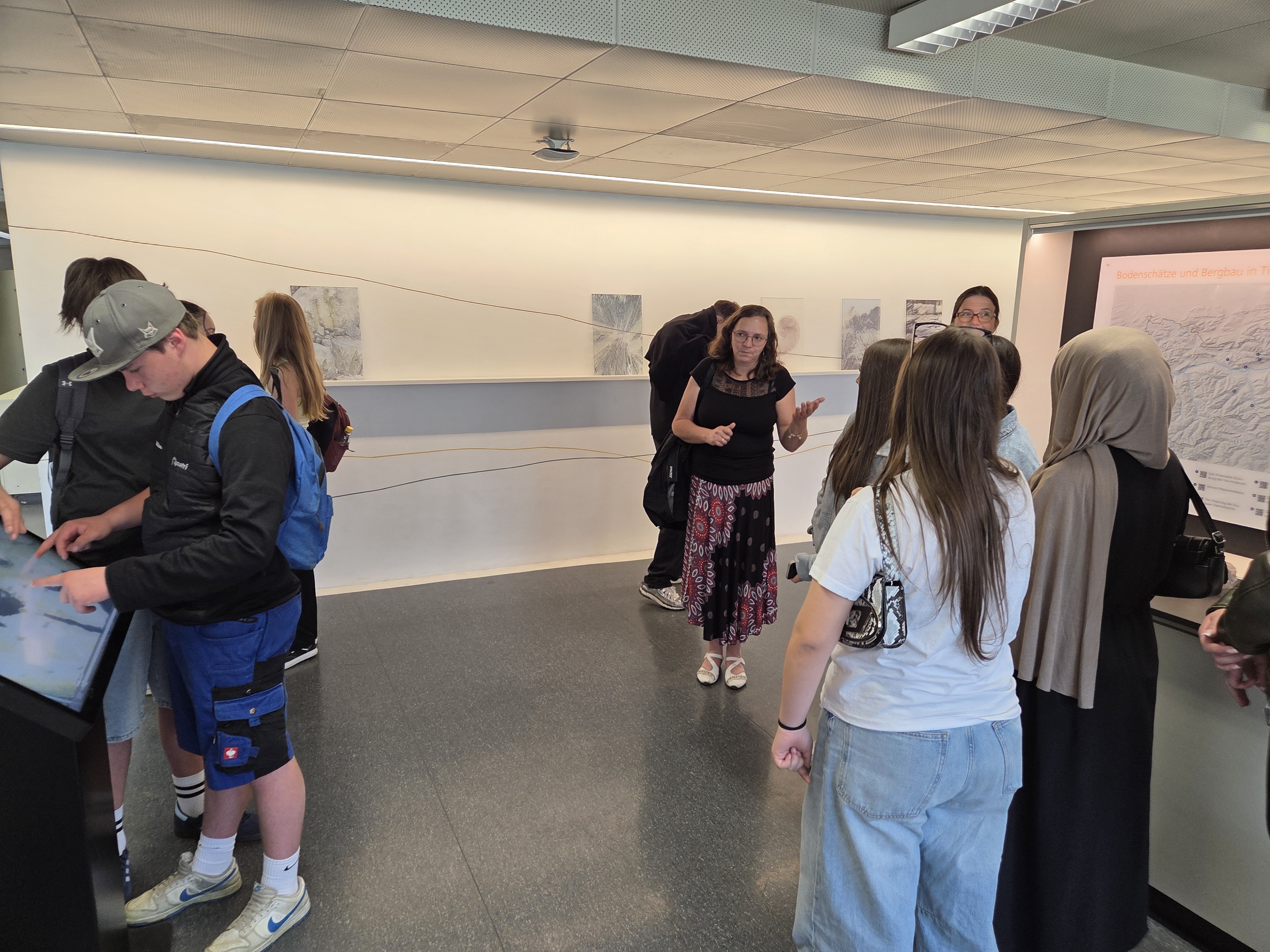 Am Institut für Geologie kann diese Gruppe ihre am Lech gefundenen Steine schneiden und schleifen. Danach werden die Steine am Institut für Mineralogie unter dem Raman-Mikroskop angesehen. Ein Besuch in der geologischen Schausammlung beider Institute darf natürlich nie fehlen! Vielen Dank an Hannah Pomella und Bastian Joachim-Mrosko für diese Möglichkeiten!